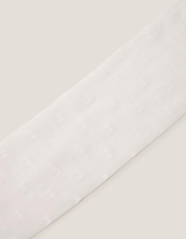 Fool-proof. Something different to their everyday plain tights,this pair is designed in semi-sheer,stretchy nylon with pretty bows for texture. Ideal to style alongside party dresses and two-pieces. White