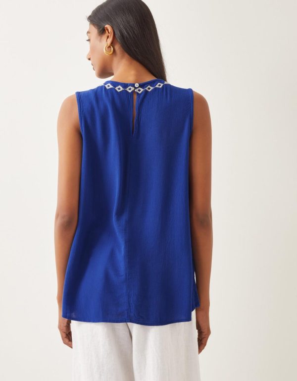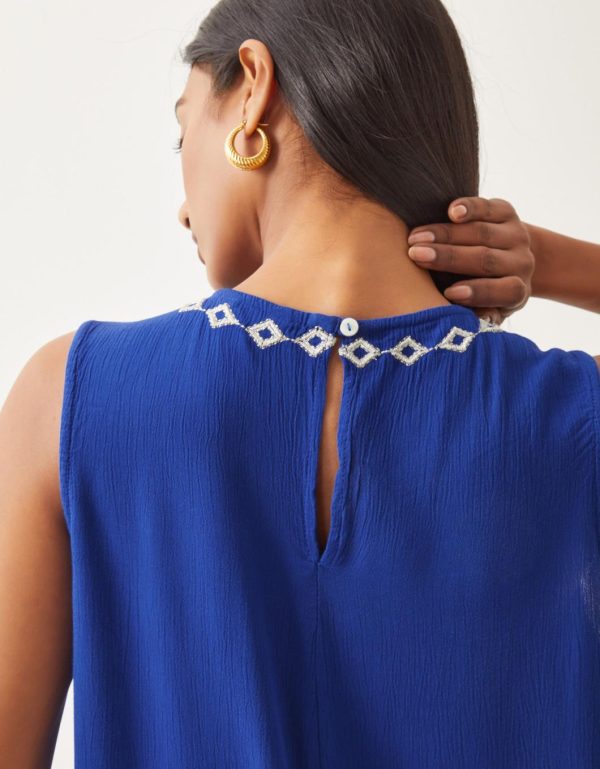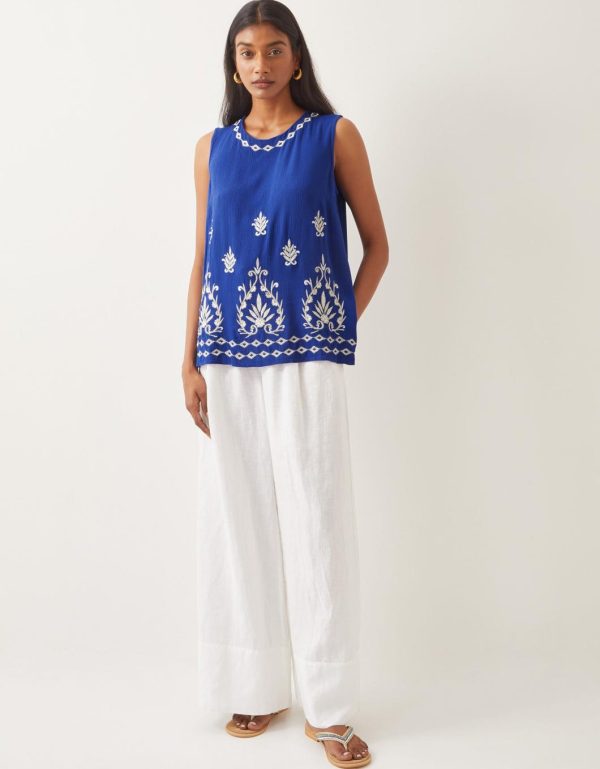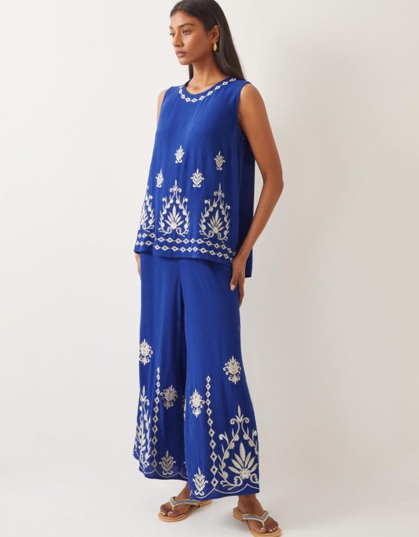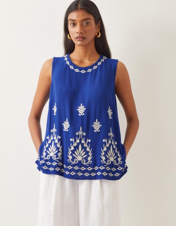Women Co-Ords | Monsoon Saffron Embroidered Tank Top Blue