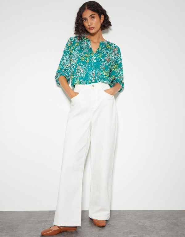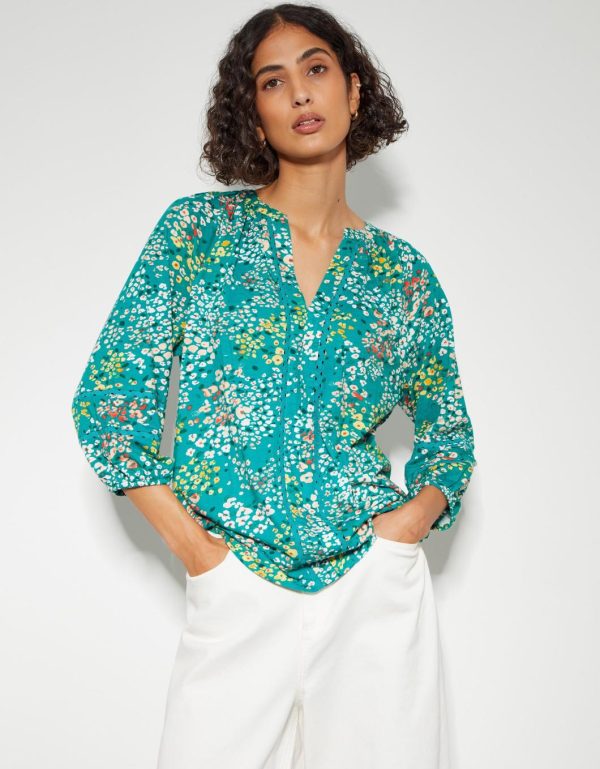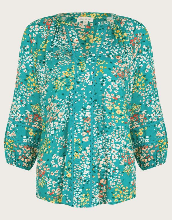 Women Tops & Blouses | Monsoon Micola Floral Jersey Top Teal
